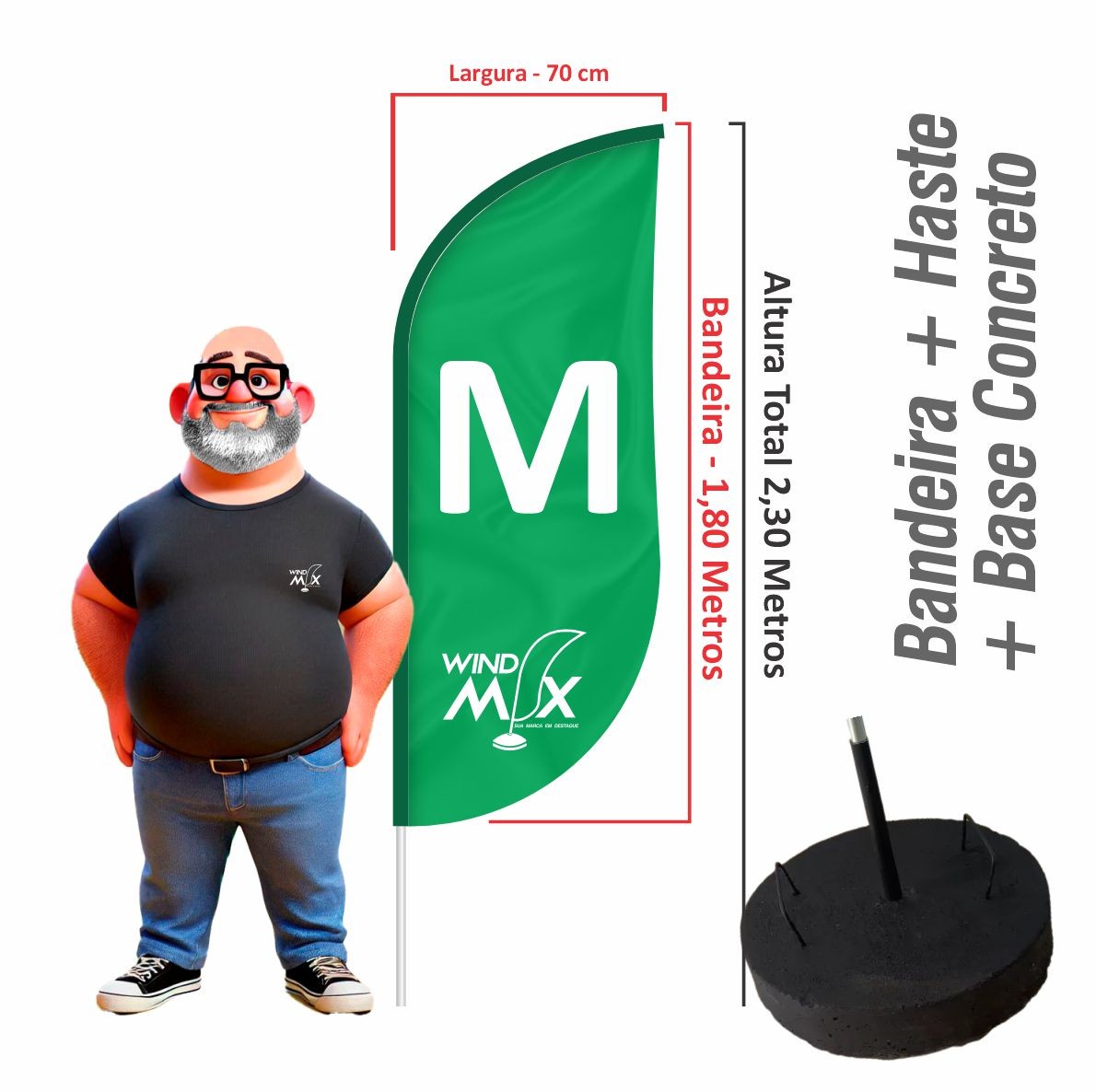 WIND BANNER M - TECIDO + HASTE + BASE DE CONCRETO